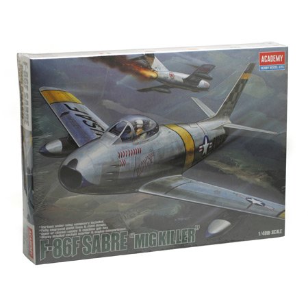 The F-86 saw extensive use during the Korean War, where it was matched up against the feared Soviet designed MiG-15. First flown on October 1, 1947, the F-86 was intended for use as a dive bomber or an escort fighter. A powerful thrust afterburning General Electric J47-GE-17B powerplant, capable of producing 7,500lb of thrust, gave the Sabre the ability to fly at speeds in excess of Mach 1. Combat experience quickly pointed out the Sabre's limited maneuverability, and the F-86F, with new redesigned and lengthened 6-3 wings, was developed. This new version, combined with the superior training and experience of American pilots, allowed the F-86 to regain control of the Korean skies and maintain an enormous advantage over the MiG-15. Kit features: Fully engraved panel lines & rivet details; Highly detailed cockpit interior & engine compartment; Open or closed canopy & machine gun bay; and Various under-wing weaponry included.