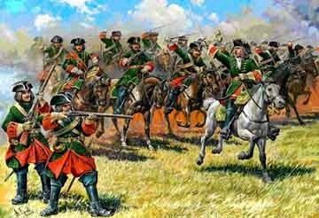 This kit features: 16 figures on horses: commander, drummer, NCO, sergeant, 4 different dragoons; and 6 unmounted dragoons